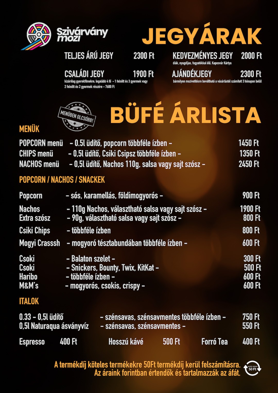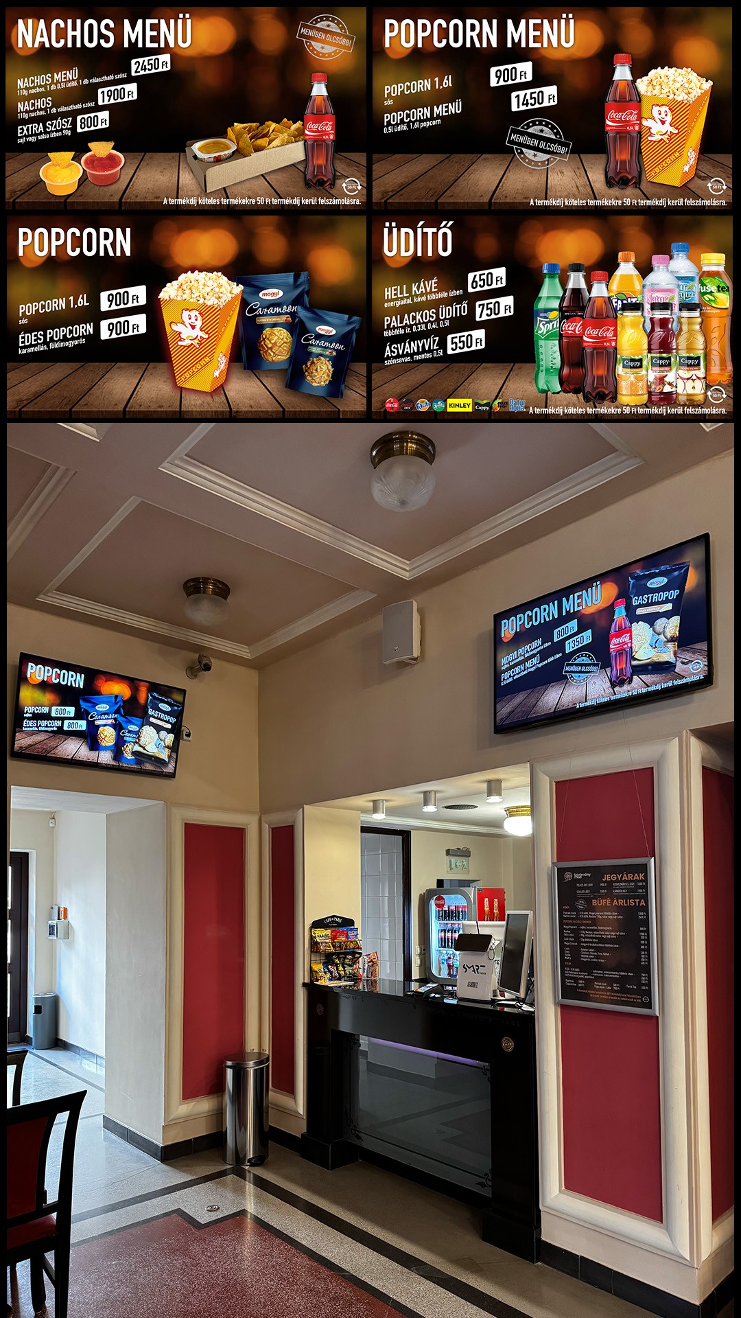 A mozizás élményéhez hozzátartoznak a hideg üdítők és a ropogtatnivalók is, így az előtérben minden igényt kielégítő büfével, várjuk vendégeinket.